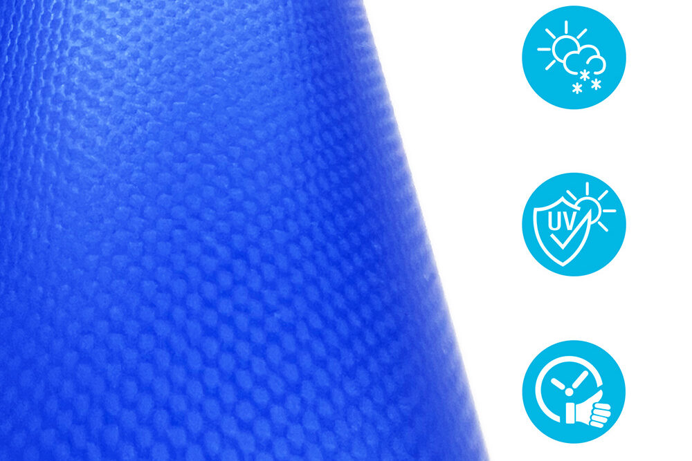 Die aufblasbare Poolabdeckung besteht aus einem gewebeverstärkten PVC-LKW-Planenstoff, der extrem reißfest, wasserdicht, UV-beständig und pflegeleicht ist. Doch drei Faktoren bedrohen selbst diese robuste Qualität.