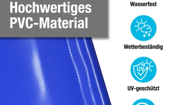 Unsere Poolabdeckungen bestehen aus hochwertigem PVC-Planenstoff, der speziell für seine Robustheit und Langlebigkeit ausgewählt wird. Für aufblasbare Poolabdeckungen verwenden wir beispielsweise eine Premium PVC Plane mit einem Gewicht von 1360g/m² (bestehend aus 2x 680g/m²), die extrem reißfest, pflegeleicht, wasserdicht und mit einer edlen Hochglanzlackierung für maximale Langlebigkeit versehen ist. Stangenabdeckungen sind aus Premium PVC Plane mit 680g/m² gefertigt, ebenfalls extrem reißfest, pflegeleicht, wasserdicht und mit Hochglanzlackierung. Diese Materialstärken gewährleisten eine außergewöhnliche Widerstandsfähigkeit gegenüber Witterungseinflüssen, Abrieb und täglichem Gebrauch. Die gewebeverstärkte PVC-Qualität macht die Abdeckungen extrem robust und sehr pflegeleicht.