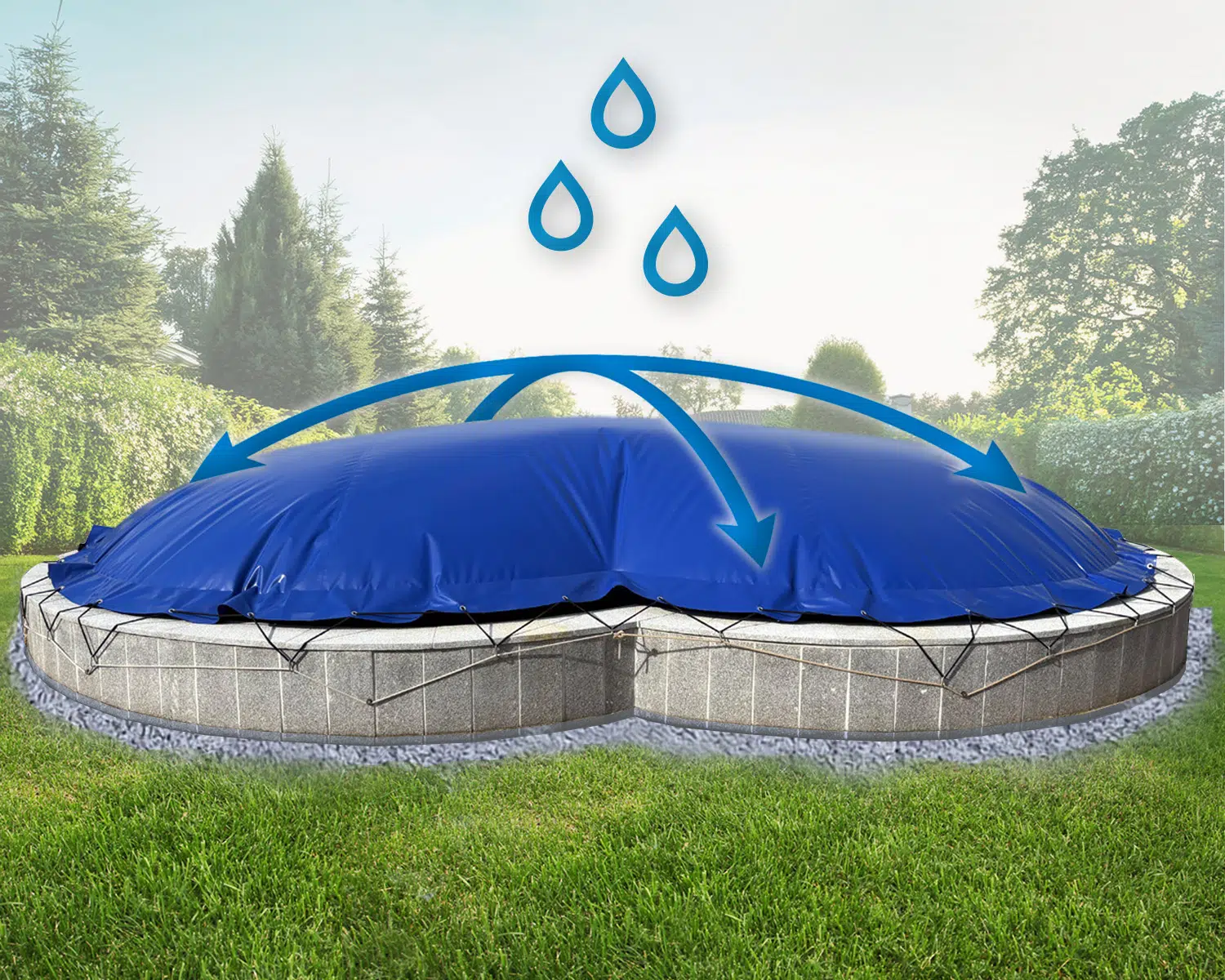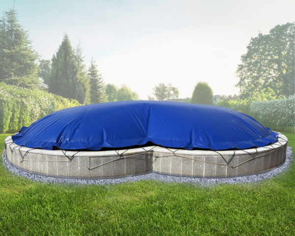 - Bitte beachten Sie, dass das Aufblasen der Abdeckung und die dadurch entstehende Formveränderung/ Kuppelbildung zu einer Faltenbildung im Randbereich führen kann.