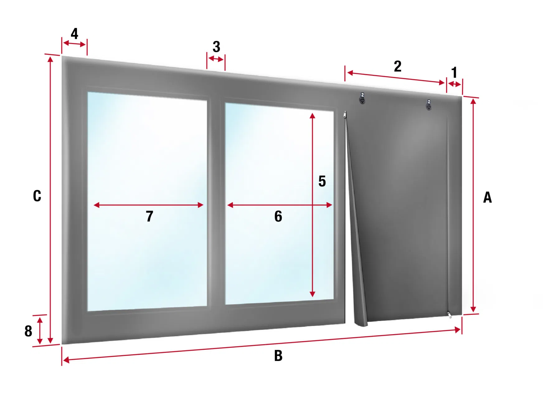 - Unabhängig von der Schräge weisen die Fenster eine rechteckige Form auf und sind produktionsbedingt max. 170cm hoch. Alle Fenster haben dieselbe Höhe.