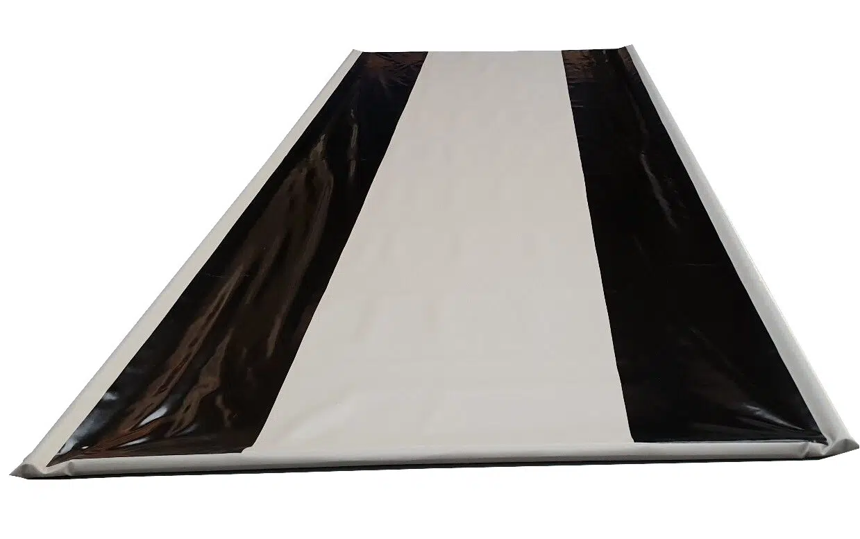 - An den Seiten wird eine 5 cm breite Wulst aus PUR-Schaumstoff angeschweißt, sodass der Wasseraustritt verhindert wird