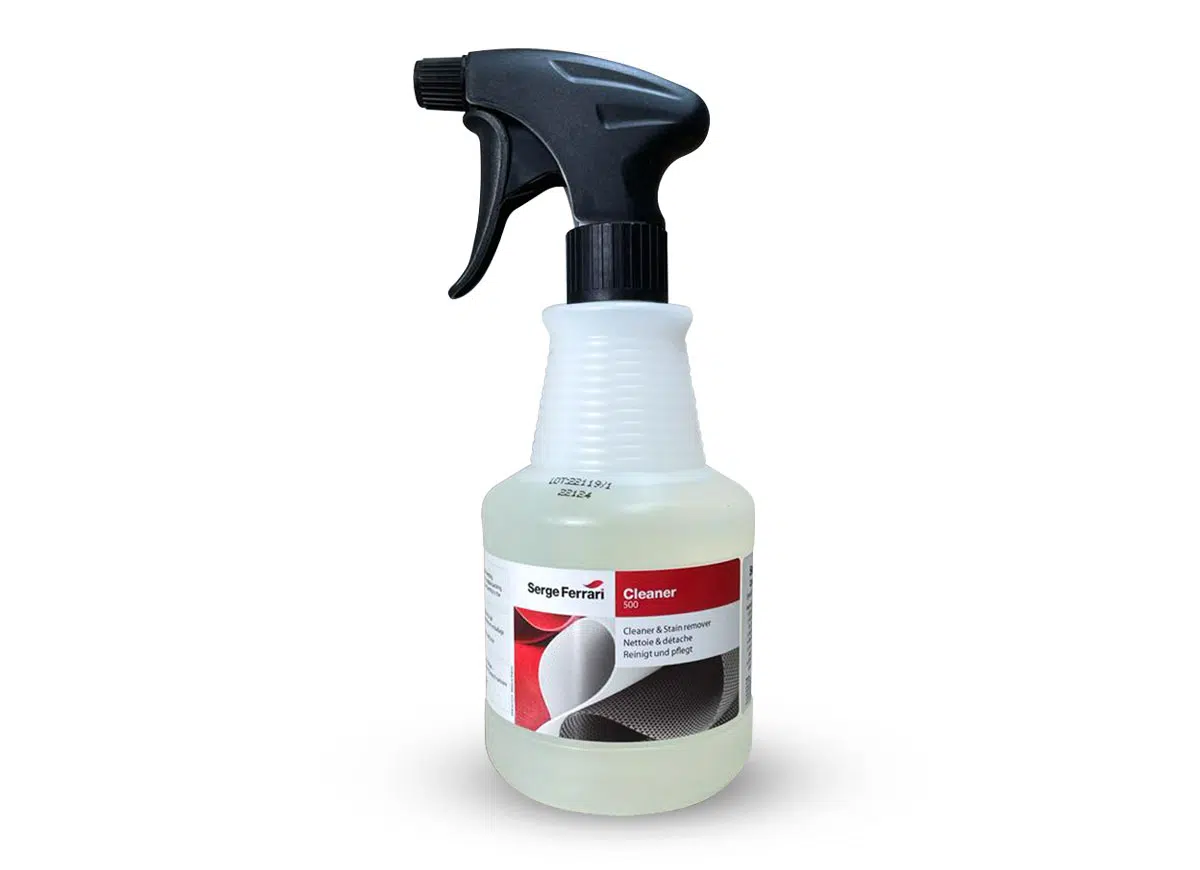 Reinigen Sie Ihren PVC-beschichteten Planenstoff ordentlich und unkompliziert mit dem einzigartigen Reiniger von Serge Ferrari. PVC beschichtete Textilien erstrahlen nach der Reinigung im neuen Glanz.